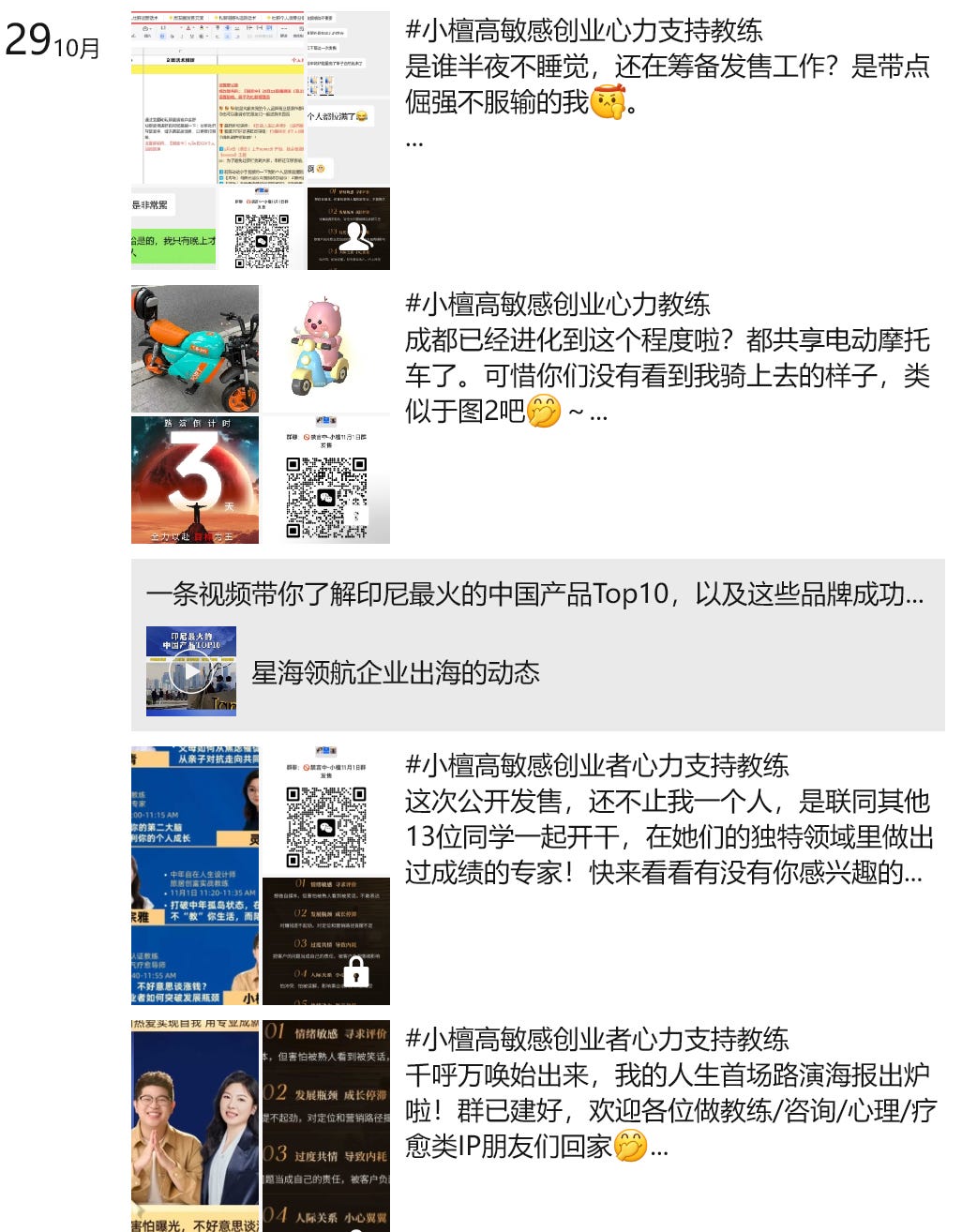 我努力地说服我自己“销售就是要重复”,这些道理我都懂,却始终攻克不了那个下最终决策的内心阵地。后来我就换了一个思路——既然是害怕打扰,那我就用传递价值的方式,一个一个做定制化私聊。